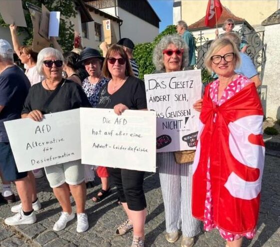 Rottenburg/Münster – Rund 80 Bürgerinnen und Bürger haben am Mittwochabend vor dem Gasthaus Abelshauser in Münster (Gemeinde Rottenburg a. d. Laaber) ein deutliches Zeichen gegen die AfD gesetzt. Auch Mitglieder der SPD Rottenburg und Umgebung waren zahlreich vertreten und leisteten einen wertvollen Beitrag zur Demo gegen rechts. Unter dem Motto „Keine Lust auf AfD – unsere Dörfer sollen sauber bleiben“ rief die Initiative „Bunter Landkreis Kelheim“ zur Mahnwache auf – unterstützt vom Runden Tisch gegen Rechts Landshut.