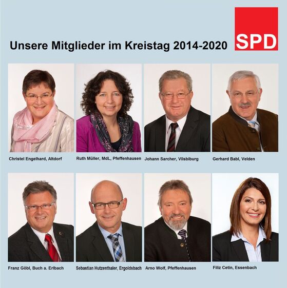 Die Bürgerinnen und Bürger haben gewählt. Im Kreistag 2014-20 sind erneut acht Mitglieder der SPD aus dem Landkreis Landshut vertreten. Neben den erfahrenen Kreisräten Christel Engelhard, Ruth Müller, MdL, Johann Sarcher, Gerhard Babl, Franz Göbl und Arno Wolf wurden auch Filiz Cetin und Sebastian Hutzenthaler in das Landkreisgremium gewählt. Wir alle bedanken uns für Ihr Vertrauen und Ihre Stimmen und werden die Interessen der Menschen in unserem Landkreis vertreten. In den nächsten Wochen gruppiert sich der neue Kreistag, die Ausschüsse werden gebildet und besetzt, die Stellvertreter des neuen Landrats gewählt – selbstverständlich informieren wir Sie aktuell über die weitere Entwicklung.